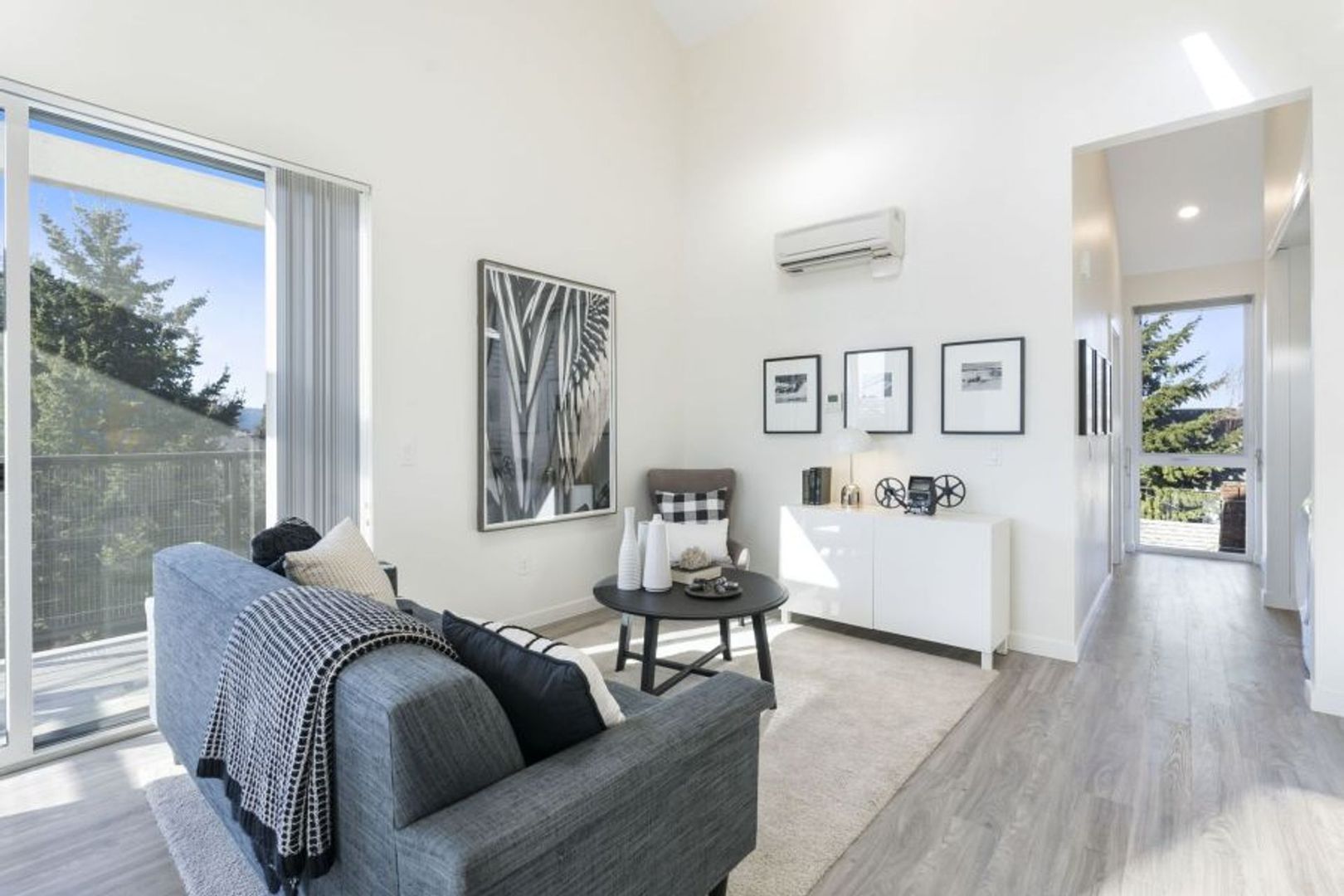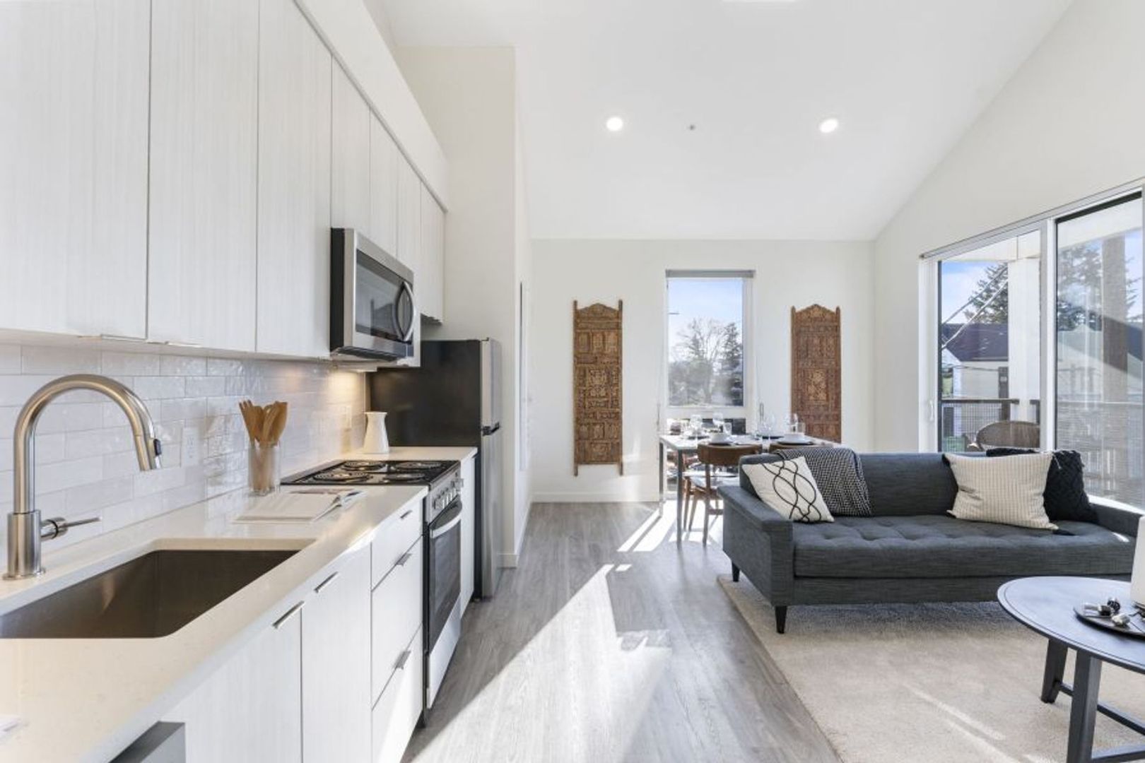 Your new home in the heart of Portland. This modern new construction apartment boasts high-end finishes, vaulted ceilings, and an abundance of natural light. The kitchen is equipped with brand new appliances and quartz countertops, complemented by luxury plank vinyl flooring throughout. Enjoy the convenience of in-unit washer and dryer, central air conditioning, and your own private patio or balcony.